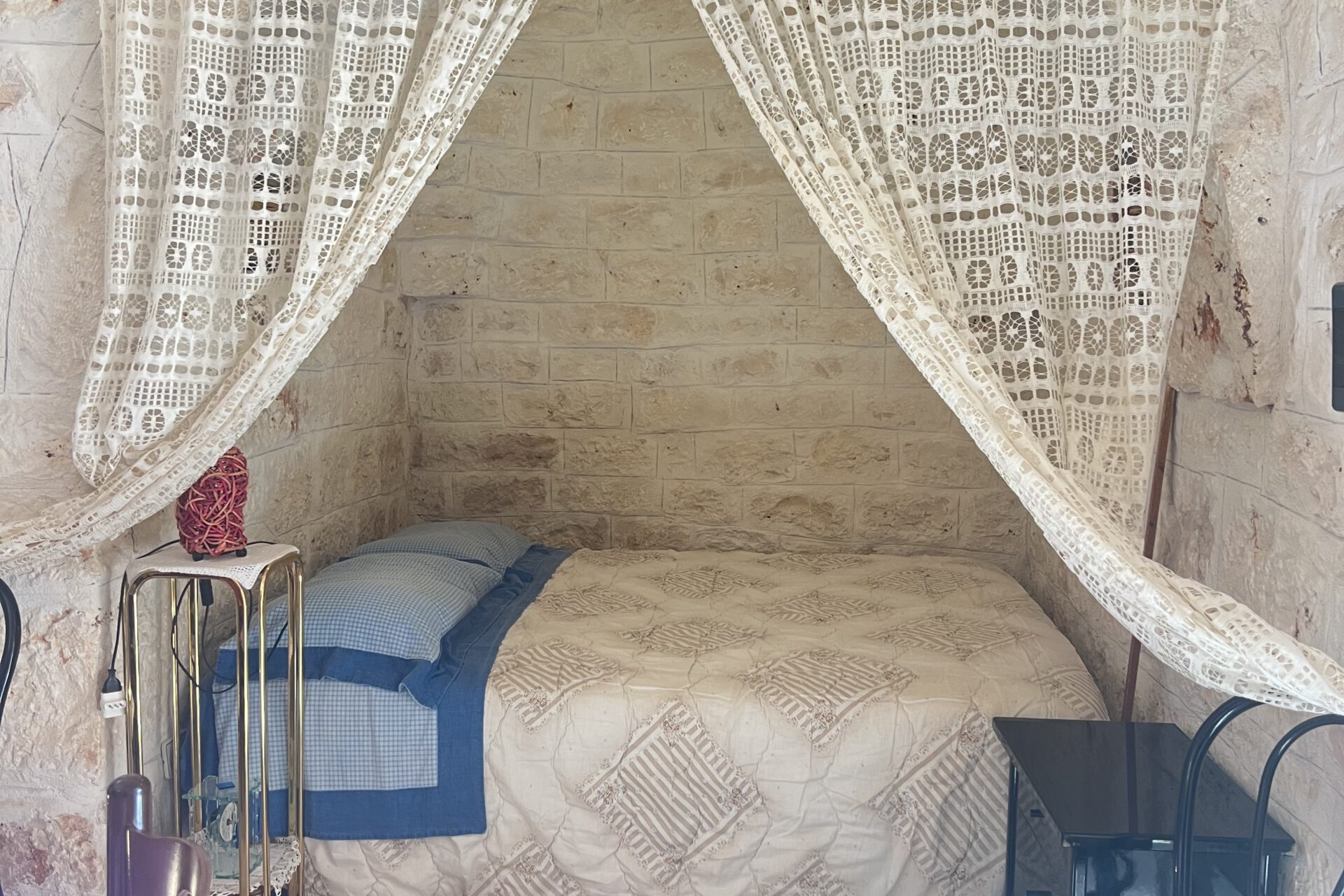 Il trullo dispone di due camere da letto confortevoli e un bagno funzionale, mantenuto in ottimo stato. Il terreno circostante di circa 13.000 mq, in parte recintato da un suggestivo muro a secco, offre ampie possibilità di valorizzazione: immagina giardini rigogliosi, alberi da frutto o un’area barbecue per le tue serate estive. Inoltre, un grande piazzale è disponibile per il parcheggio o come area relax.